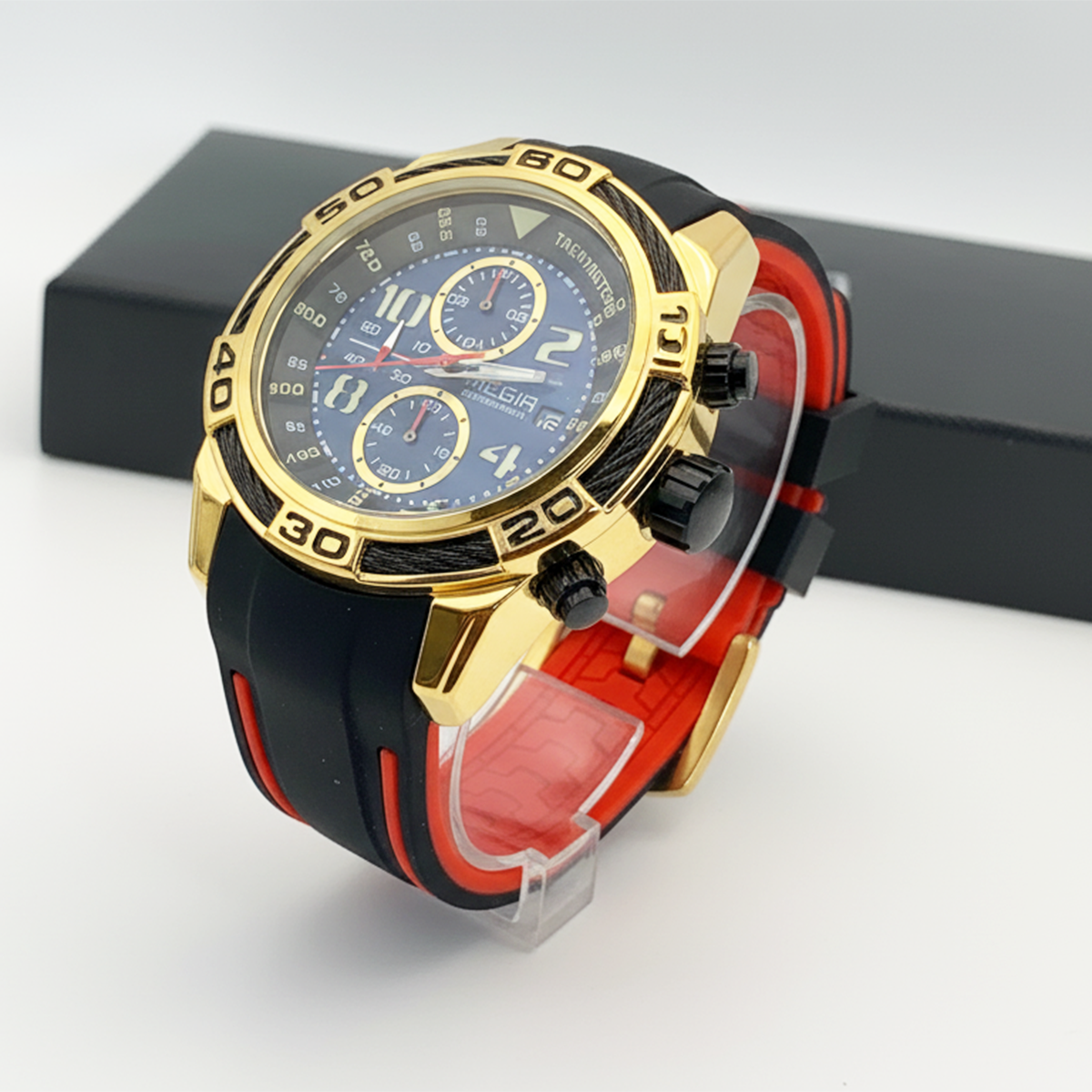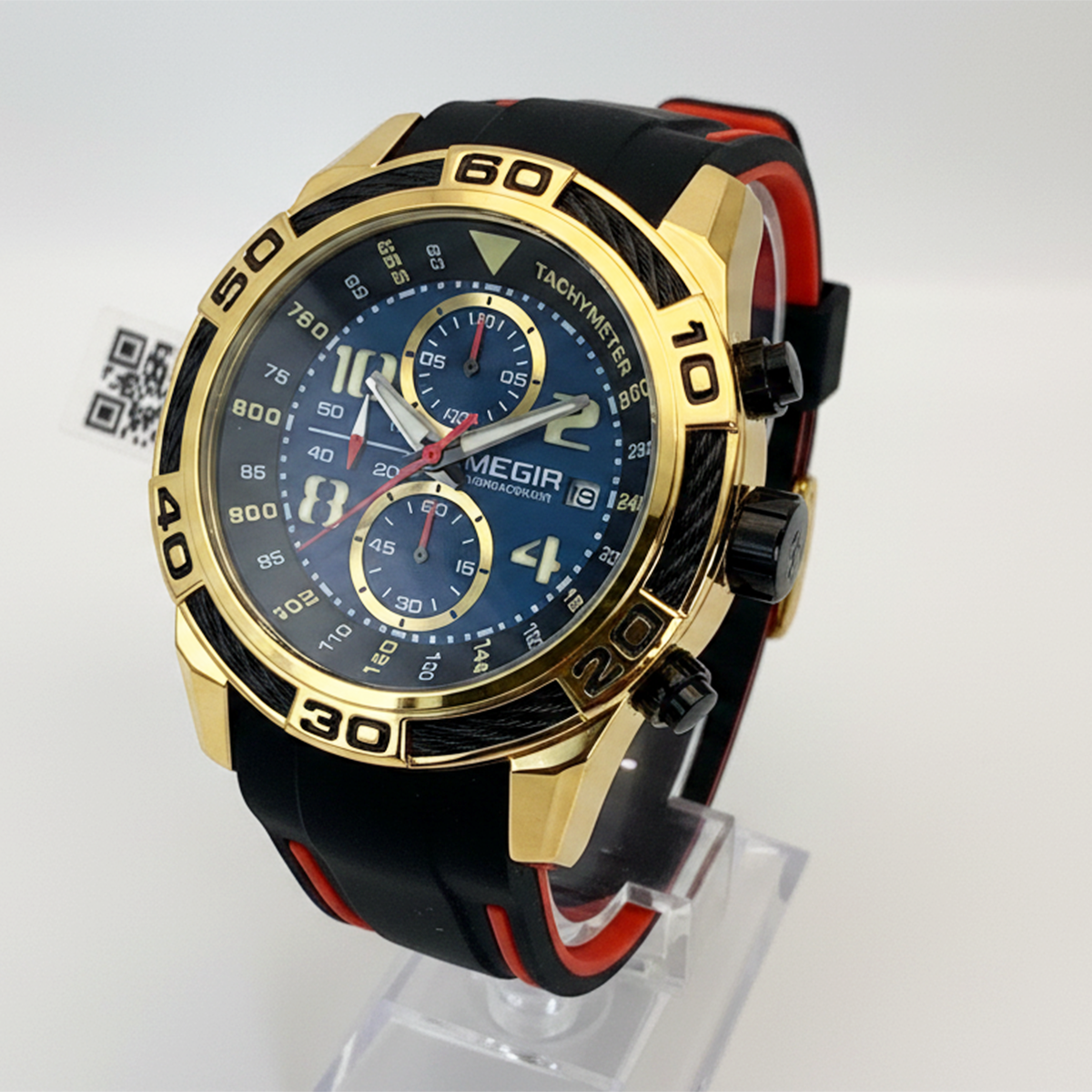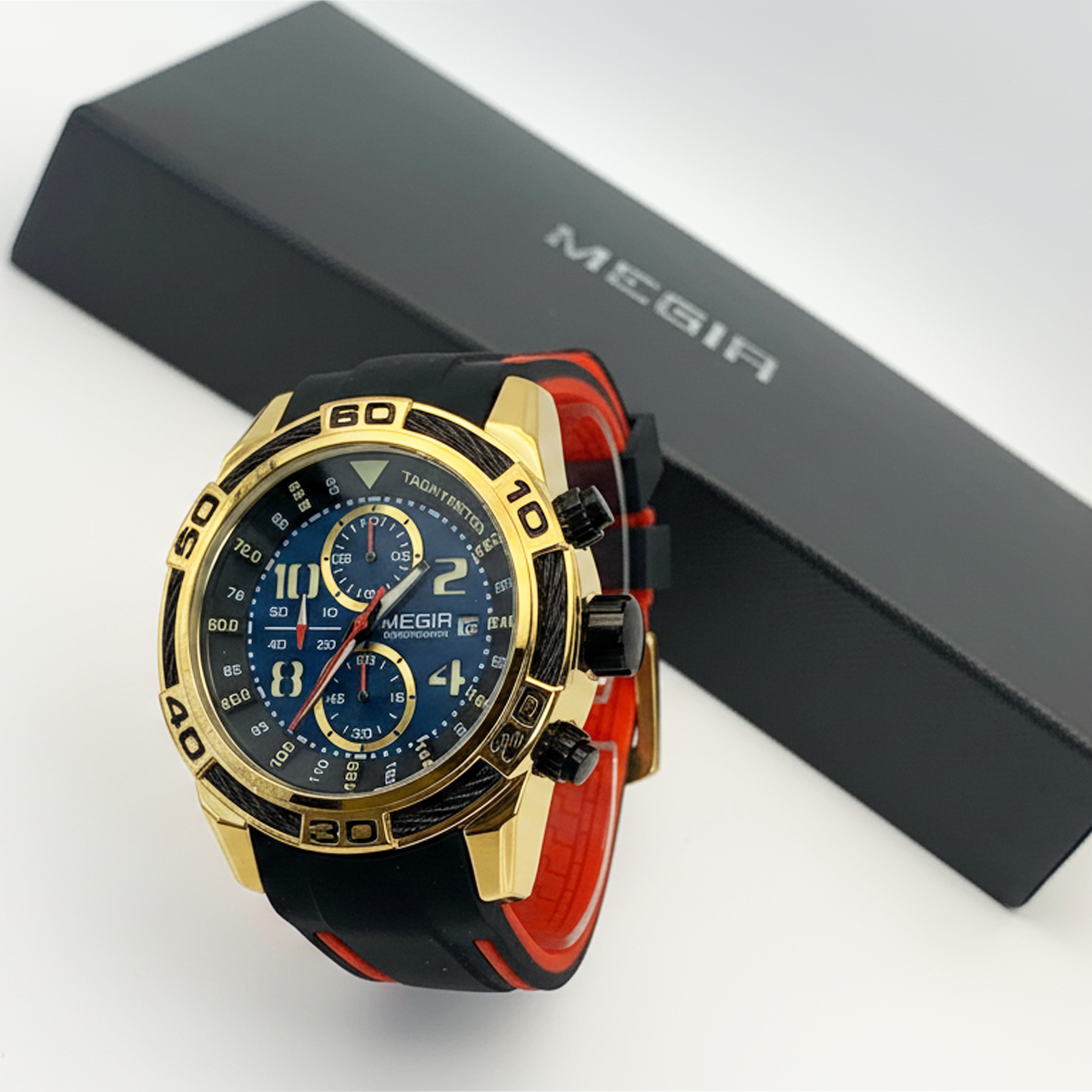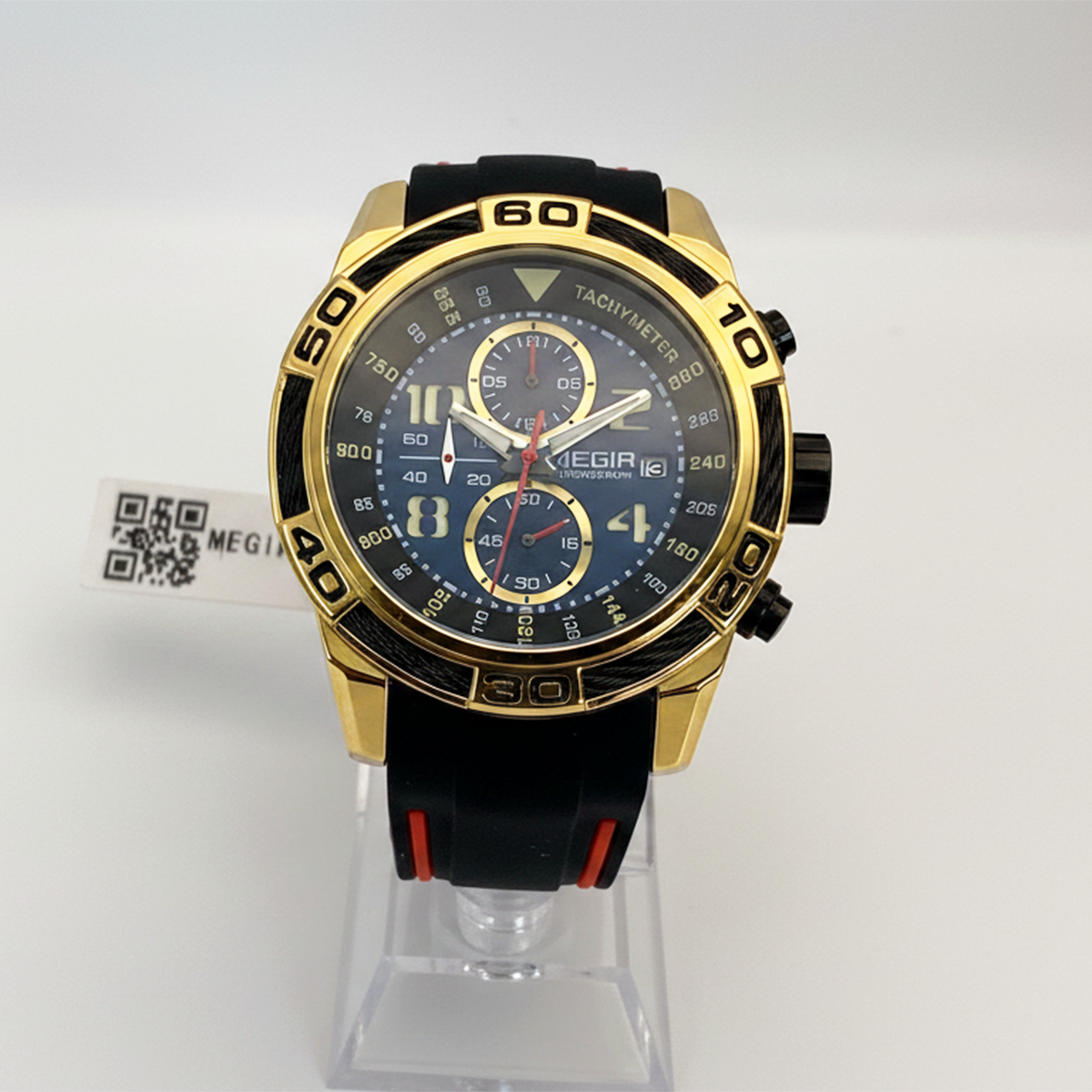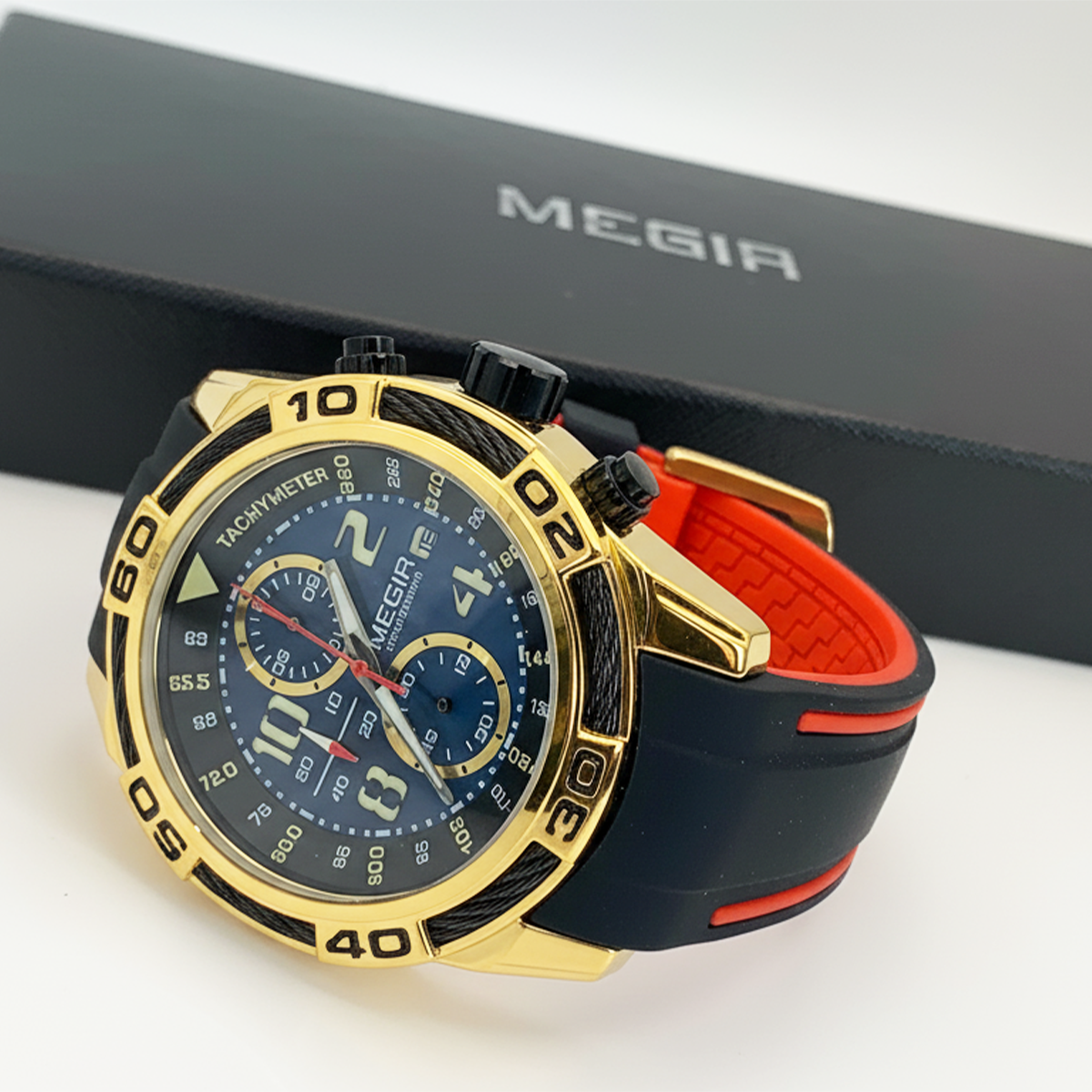 Montre de sport MEGIR 2045 étanche en silicone doré, chronographe de luxe po20000ur homme